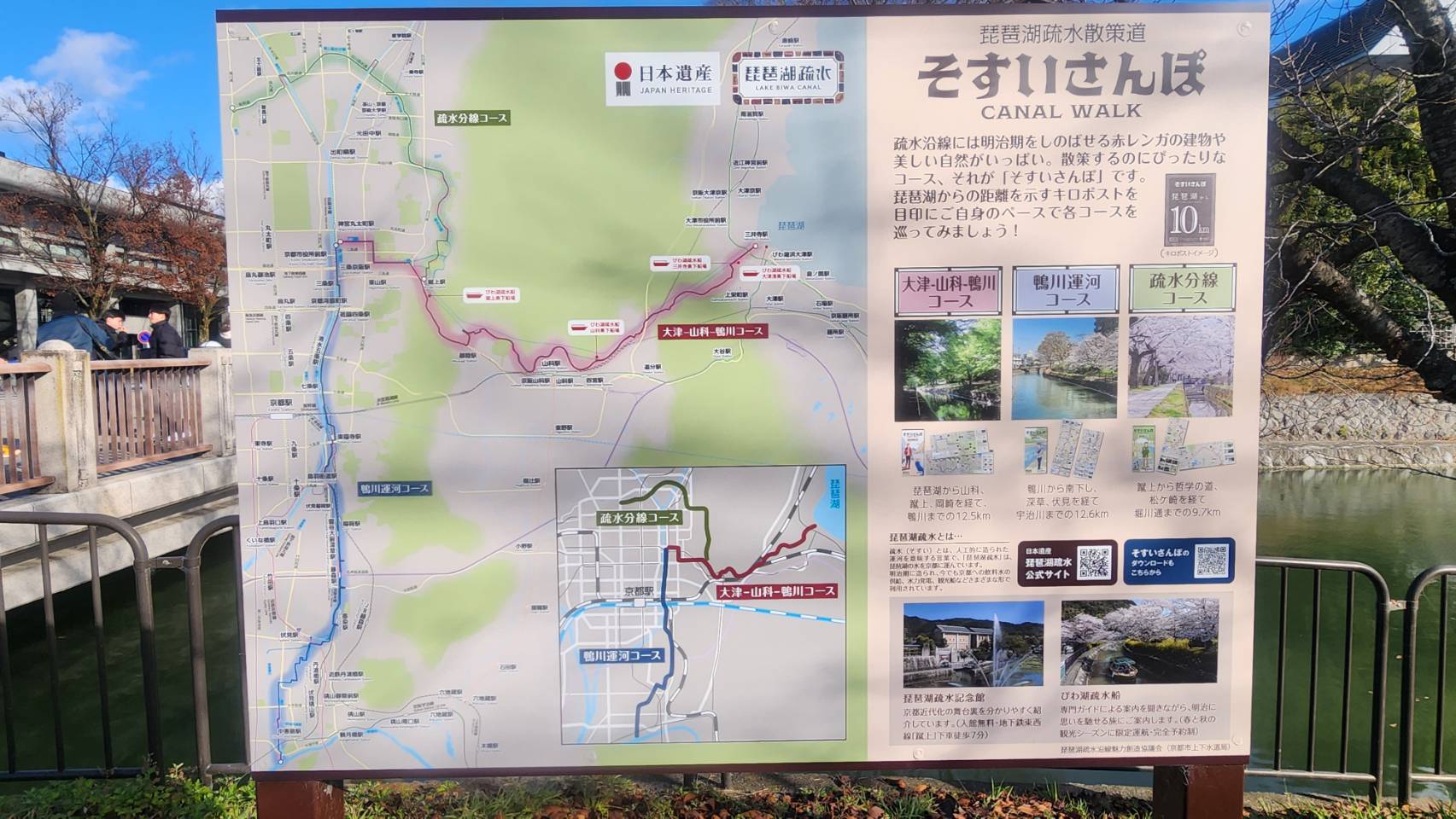 疎水について少し触れておくけど、京都に琵琶湖の水を呼び込むために作られた人工的な水路。あの南禅寺にかかっていた赤レンガの橋も、琵琶湖の水を運ぶ水路なんだけど、今日はあの水路を辿って琵琶湖まで行こうという計画。
