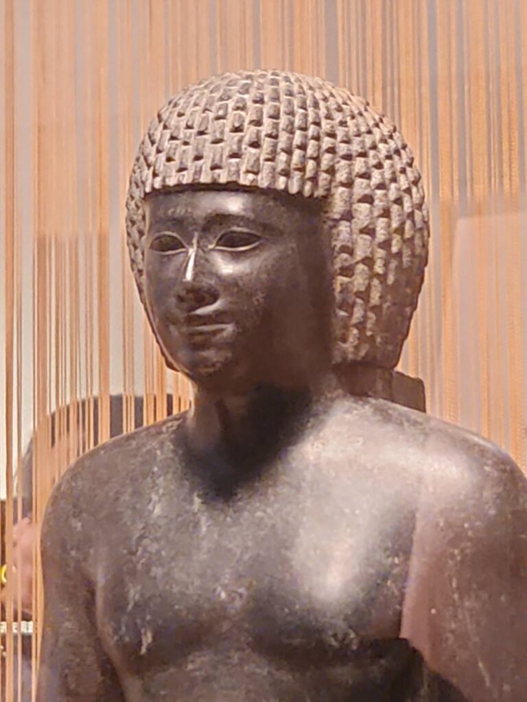いろいろ見ていくと、現在から4500年前の古代エジプト時代に、お洒落さが見えてきた。石像や、石板に書かれた姿は、髪の毛が整えられている。