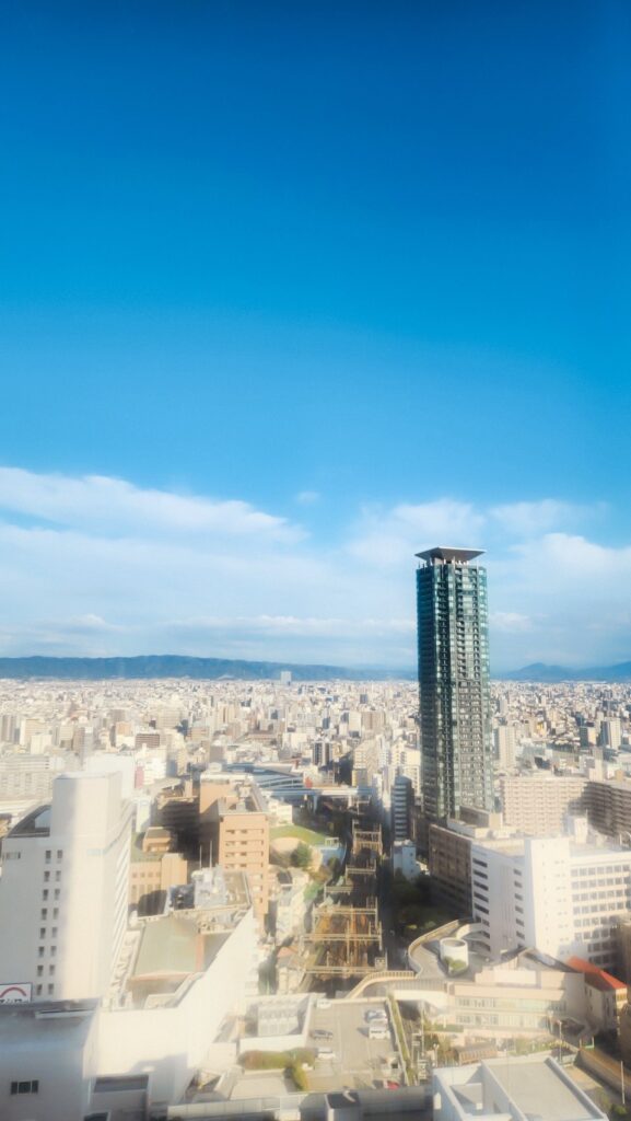運よく窓側の席を押さえる事ができて、高層階からの大阪の眺めは圧巻だった。