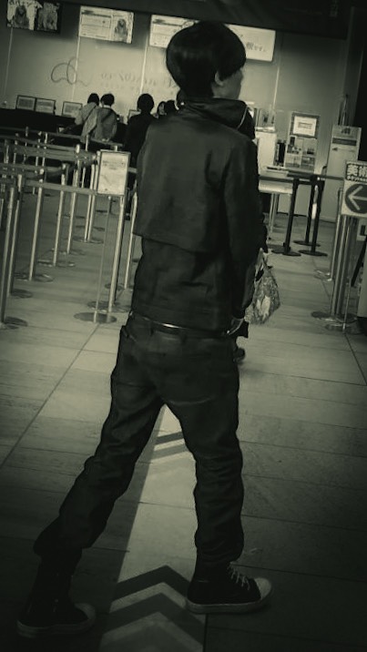 息子の言いたい事は、細かいところよりも、シンプルに構造を見て欲しかったようだ。腰履きに見せた空間を演出していて、重心が低くて、しかも細くて、上着と靴と一体感があった。