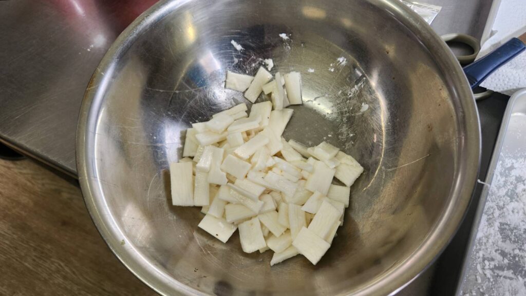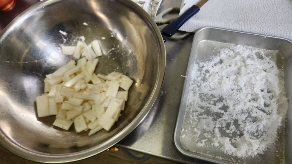 今日の献立は「豚ととろろ芋のピリ辛炒め」。